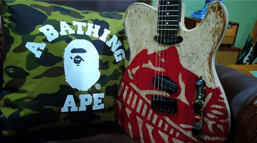 Another instantly recognizable iconic image is the red chief native American head design. I also used this design in my second build. Each of the guitars is a true, ‘one of a kind’ instrument, with unique artwork exquisitely and individually hand painted, Relic'd. For this art series build, I also adopted some modern material such carbon fiber neck for better stability with great consistency.