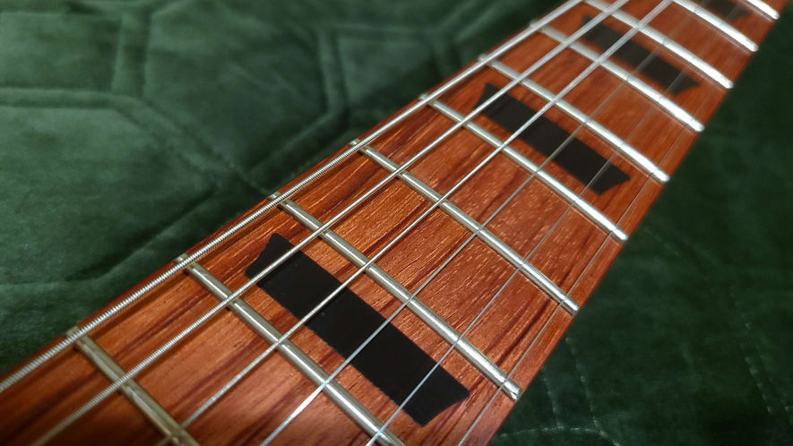 As a tonewood, purpleheart offers a remarkably balanced tone given its density. It's characterized by relatively high sustain and projection along with a resonant bass response, bright mids and clear upper-mid/high-frequency profile. It projects clean fundamentals and overtones with precision and adds subtle warmth across the low and low-mid frequencies.
